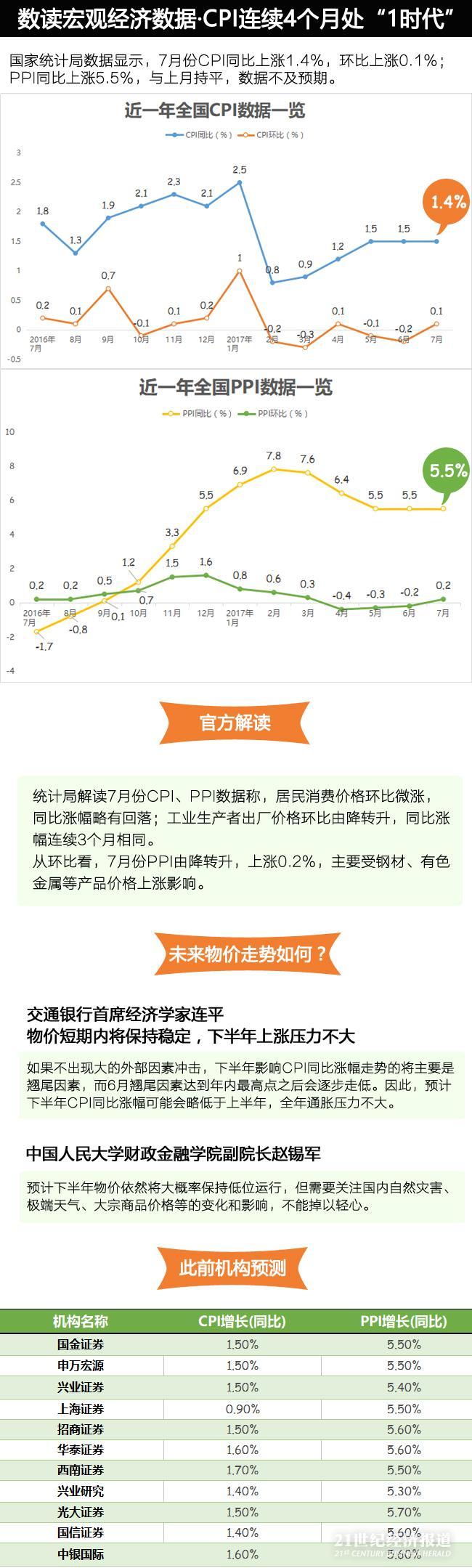 7月CPI同比增1.4%低于市场预期,再次证伪经济“再通胀论”,全年通胀水平大概率呈现温和走势,大概率将维持1-2%的窄幅水平,既不会存在通缩,也不会发生再通胀;不认为央行需要进一步紧缩,而是应当维持“不松不紧”;仍然看好股市长期“健康牛”,“监管协调2.0”为下半年债市慢牛奠定基石。