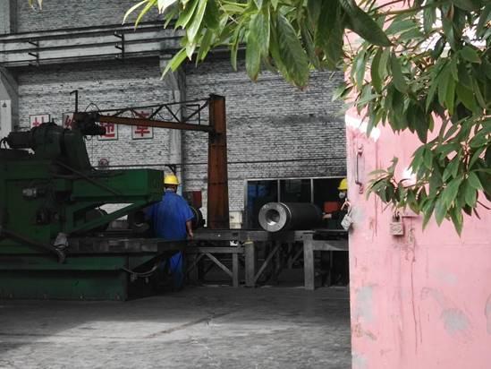 8月2日下午,界面新闻记者在成都蓉光炭素货运进出口看到,约有5辆货车集中于此载货,其中一辆正在过磅。厂区内多处可见放置的石墨电极产品或半成品。