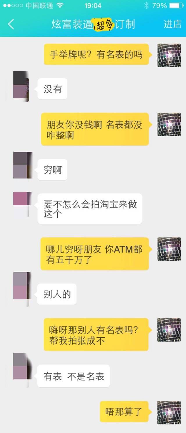 在TB众多的店家中,我们一眼就相中了一家订制炫富的小店,于是开始了这个刺激而又心酸的暗访之旅。