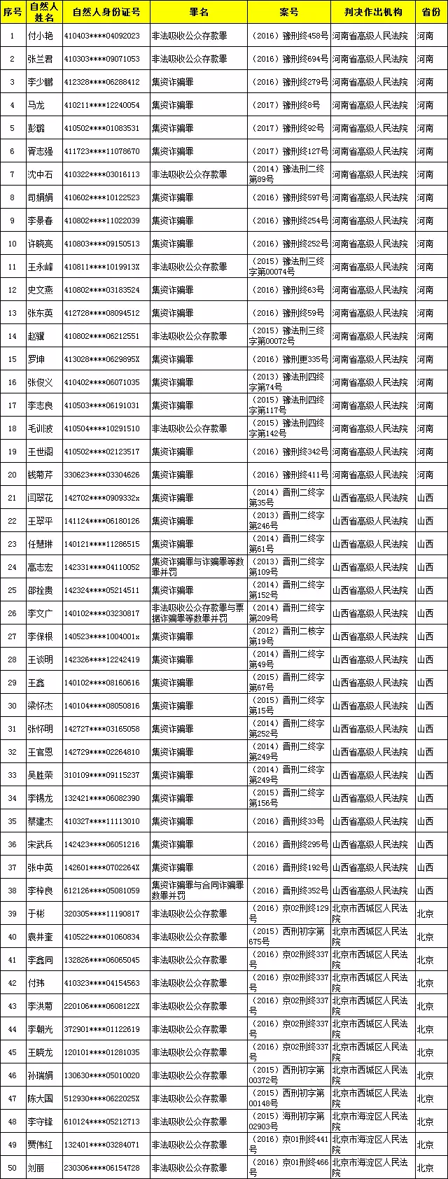 国家发改委新闻发言人 孟玮:严重失信债务人名单来源于最高人民法院失信被执行人名单库,也就是我们通常所说的“老赖”,非法集资名单来源于处置非法集资部际联席会议办公室提供的非法集资案件数据,其他严重违法名单来源于最高人民法院涉金融刑事犯罪审判数据。