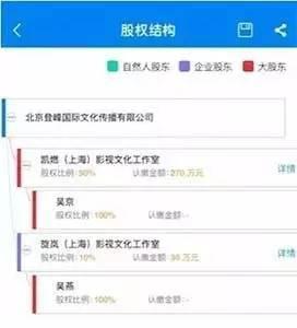 北京登峰国际文化传播有限公司没有自然人股东,但是占90%股权大股东的唯一股东是自然人吴京,所以说吴京是实际控制人: