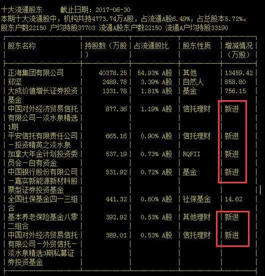 8月14日晚间,正海磁材发布2017年半年报,十大流通股东名单透露了养老金的最新动向:养老金以“基本养老保险基金八零二组合”账户亮相,成了正海磁材的第九大流通股东。
