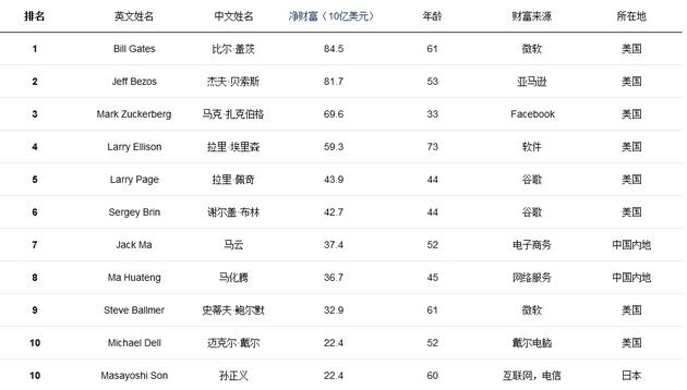 福布斯全球科技界富豪榜:比尔盖茨榜首 马云第7