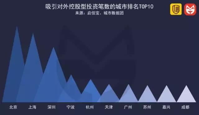 可以看到,吸引外来控股型投资笔数最多的前三名的仍然是北上深。相比投资排名,宁波跃迁至第四名,超过了杭州。而广州则再下降了两个名次。