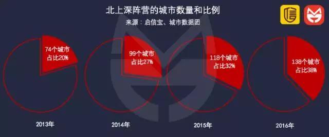 在2013年,北上深阵营和本地化阵营的城市比为2:8,而到了2016年,已经接近4:6。