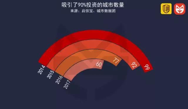 数据显示:2014年,90%的控股型城际投资去向了99个城市,而到了2017年,90%的城际投资只去向了60个城市。