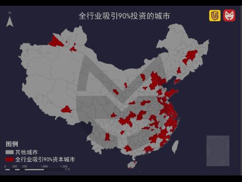 最近5年,全行业90%的城际资本集中在26%的城市里;但假如我们只聚焦科技、金融、文化等高端产业的话,90%的城际资本仅仅投给了9%的城市。