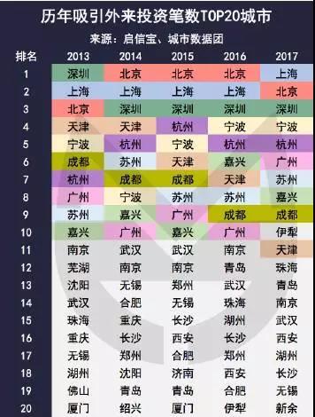 在以上前10名中(接下来上榜的是天津、南京、宁波、苏州、成都),有5名都是长三角区域的城市,可以看到长三角地区资本的活跃程度。