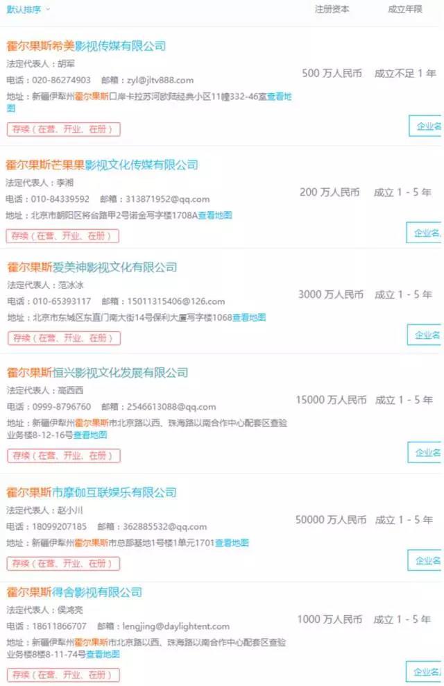 这里不展开了,线索其实是一个也许大家都没听说过的地名:霍尔果斯。但正是这个名不见经传的小城,我们在启信宝里以它为关键词搜索文化业,会跳出5000+的结果,其中不乏明星企业: