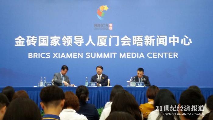 9月3日,金砖国家峰会在在厦门召开,中国代表团财政部副部长史耀斌在金砖国家领导人厦门会晤新闻中心大发布厅举行新闻发布会,介绍金砖国家财金合作进展情况。