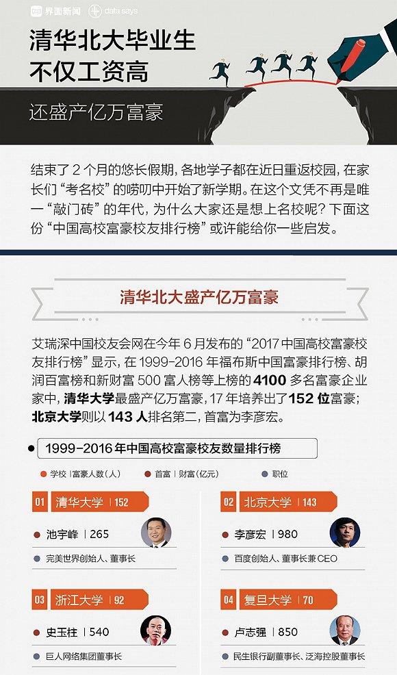 (来源:界面新闻,原标题:【图解】清华北大毕业生不仅工资高 还盛产亿万富豪)