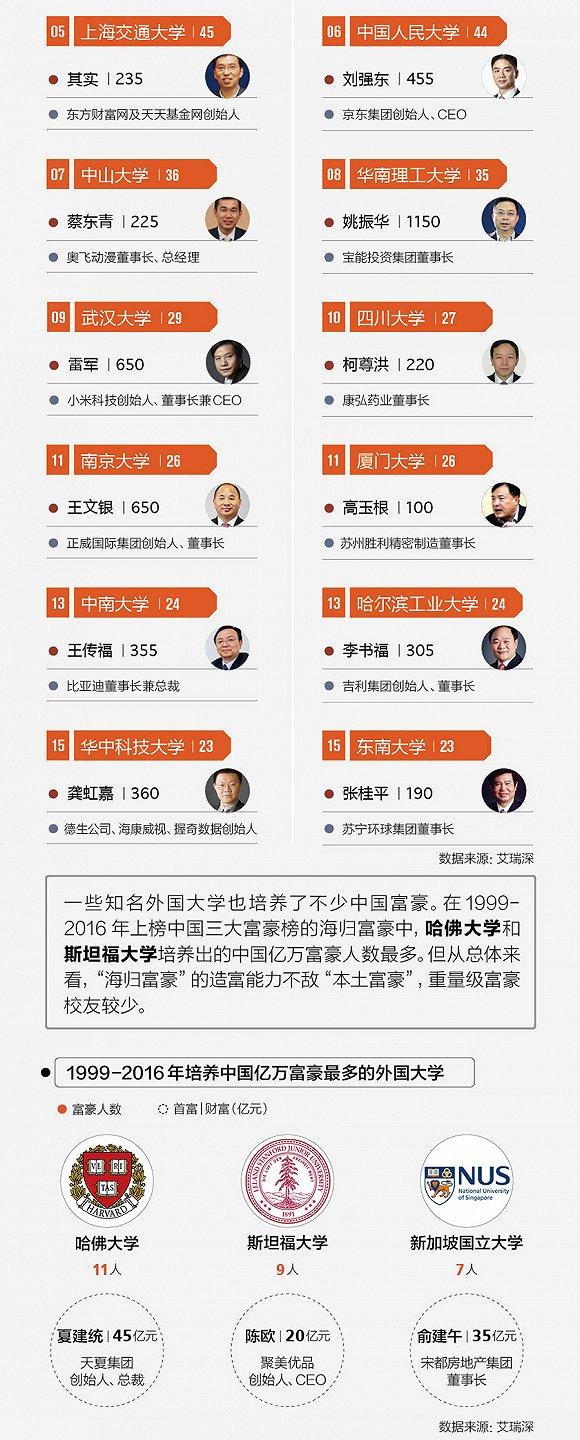 1999-2016年,清华大学共培养出了152名亿万富豪,名列全国第一。