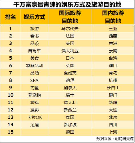 今年初,胡润百富发布的《2017至尚优品—中国千万富豪品牌倾向报告》显示,中国千万富豪平均年龄38岁,平均年消费占平均财富的3.4%。地产是他们最主要的投资方向,居住的房子平均有240平米,而旅游是其最主要的娱乐方式。