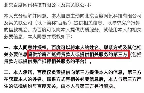 △百度金融明示将相关信息提供给第三方