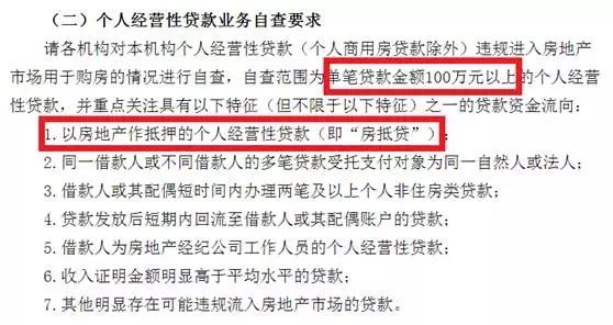 中国基金报记者从央行银监局这一文件中发现,“房抵贷”是两大类核查的第一项内容,包括了个人消费贷款业务自查和个人经营性贷款业务自查。