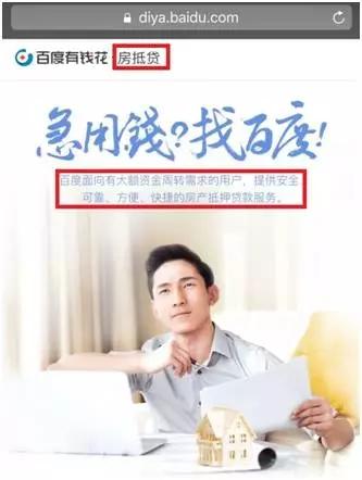 然而,在央行银监局明确要求检查“房抵贷”业务的大背景下,百度金融敢于这样进行广告推广,不得不让人怀疑,是不是撞在了枪口上?