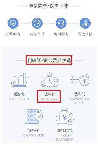 在相关页面上,记者看到的是“急用钱?找百度!”,“最快次日放款”,“申请简单,仅需4步”,“利率低,贷款灵活快速”,“服务好,无任何额外费用”等类似宣传用语。