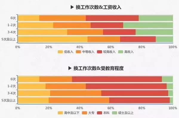工资收入越低,越爱换工作;反之收入越高不爱换工作