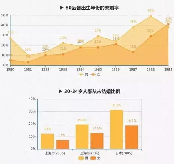 调查显示,80后整体结婚年龄越来越推迟,就拿1988年出生的80后来看,将近50%的男生都是未婚,未婚女生也接近30%。