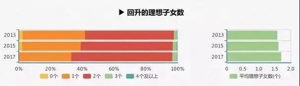 80后的理想子女数由2012年的1.58上升至2016年的1.7,但二胎生育意愿依然薄弱,仅有13.1%的被访者愿意生二孩,不愿意生二胎的前3个理由是养孩子太贵、房子不够大和时间不够。