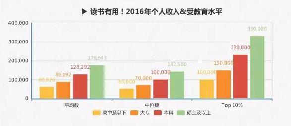 此次调查数据实力打脸“读书无用论”:学历与收入成绝对正相关,学历上升一个台阶,年薪就上调一个档次。还在上学的宝宝们别犹豫了,爸爸妈妈让你好好读书,没骗你!