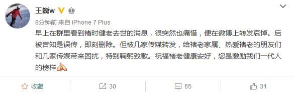 褚时健的粉丝、多次拜访褚时健的王石也在朋友圈辟谣。