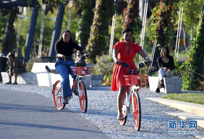 9月20日,在美国首都华盛顿,人们试骑摩拜单车。中国共享单车公司摩拜20日正式进入华盛顿,首批投放200辆共享单车供当地民众使用。新华社记者 殷博古 摄