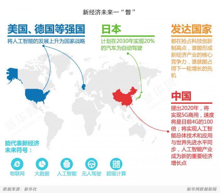 中国提出2020年,实现5G商用;实现人工智能产业成为新的重要经济增长点……中国已将新经济领域科技创新,作为带动国家跨越式发展的关键;