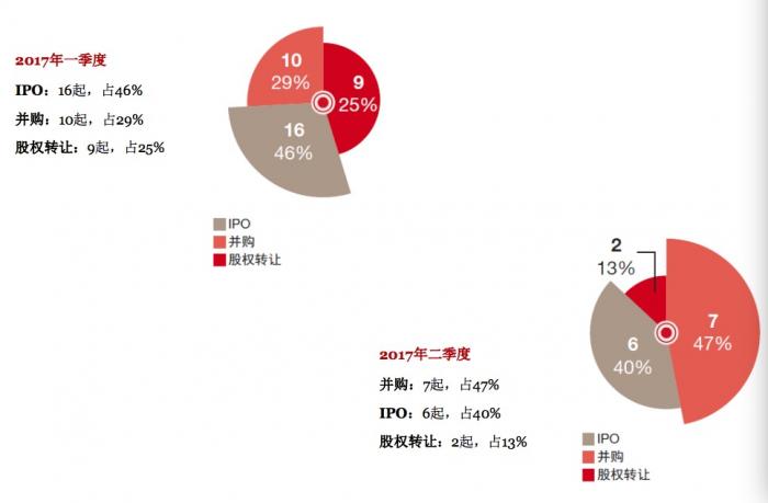 报告还提到,2017年上半年,IPO仍然是TMT行业资本退出的主要渠道,这与当前中国A股市场活跃、IPO审核节奏加快有关。但是,上半年IPO退出占全部退出案例的比例较2016年下半年有所下降。