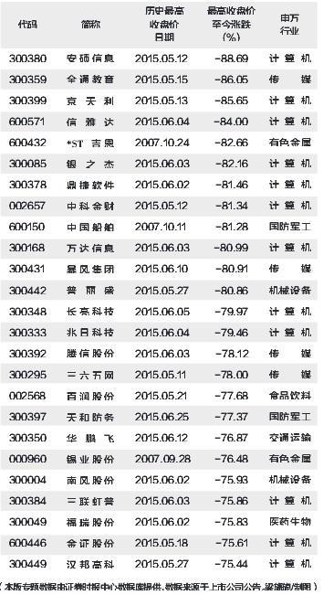 历史高价股回调幅度居前个股
