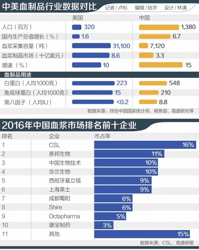血制品公司近年来在中国市场愈加活跃。2007年,政府放开国内血制品市场,人血白蛋白供不应求;2016年底,国家卫计委发布《关于促进单采血浆站健康发展的意见》,明确“按照向研发能力强、血浆综合利用率高、单采血浆站管理规范的血液制品生产企业倾斜原则”。由于其资源属性、高风险严监管的行业特质,从国际血制品行业的发展看,大型企业经济效益很大。