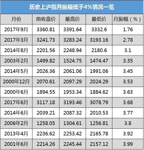 沪指9月振幅创历史新低