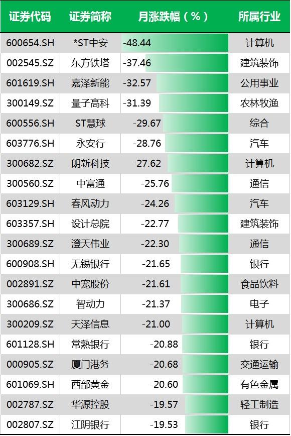 *ST中安扮演了9月的“熊大”,单月录得48.44%的跌幅。如果从今年5月31日复牌算起(期间于6月初至9月中继续停牌),*ST中安则连续“吃”了17个一字跌停,平了今年7月退市的新都退创下的A股跌停纪录。29日,*ST中安没有一字跌停,但机构净卖出1.74亿元,位居当日之首。