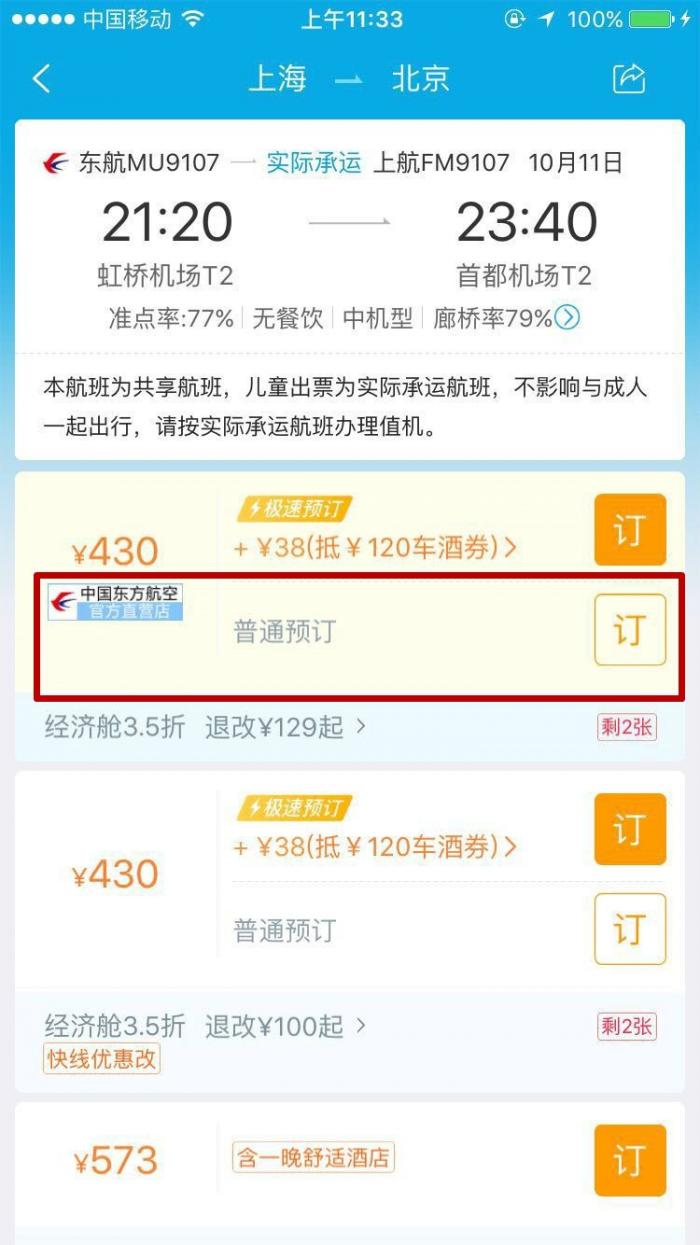 经过整改后,通过携程的“普通预订”窗口可以购买到默认不搭售任何附加服务的机票。