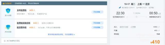 国内机票依然默认搭售了意外险、休息室等产品。