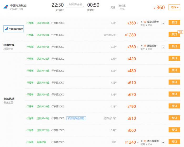 此外,部分最低价经济舱和全价经济舱机票还会被默认搭售酒店券、接机券等产品。