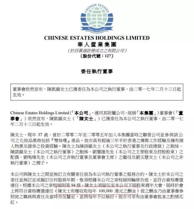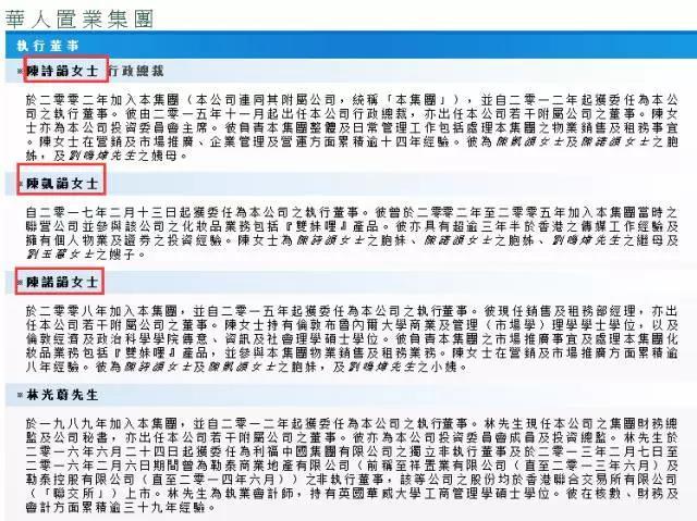 也就是说,目前华人置业四名执行董事里,陈氏三姐妹占了三席。