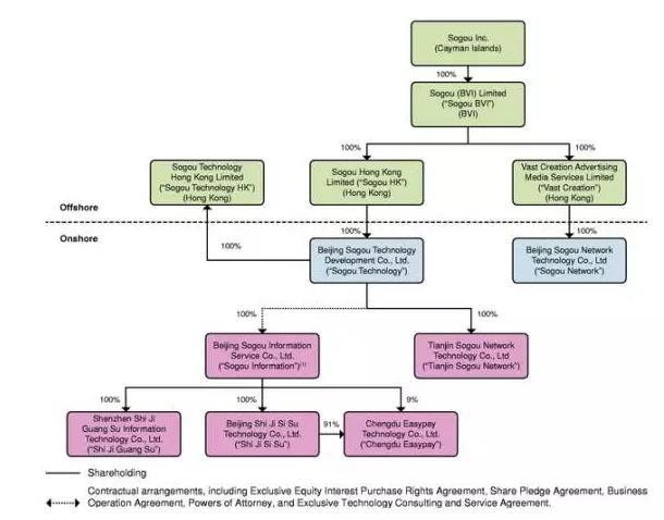 ▲搜狗上市VIE结构图包含成都吉易付(图片来源:招股书截图)