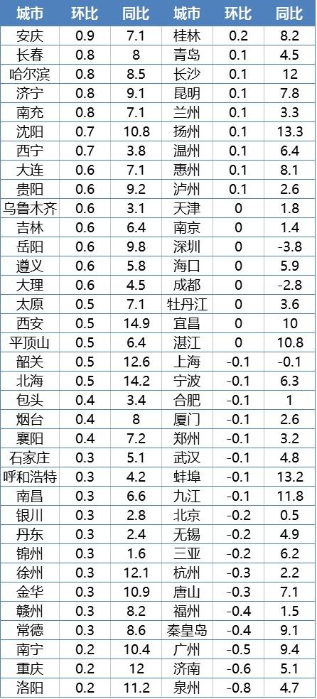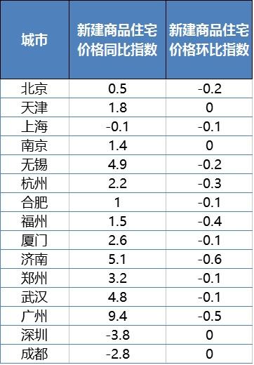 △表: 15个一线和热点二线城市新建商品住宅价格变动对比表