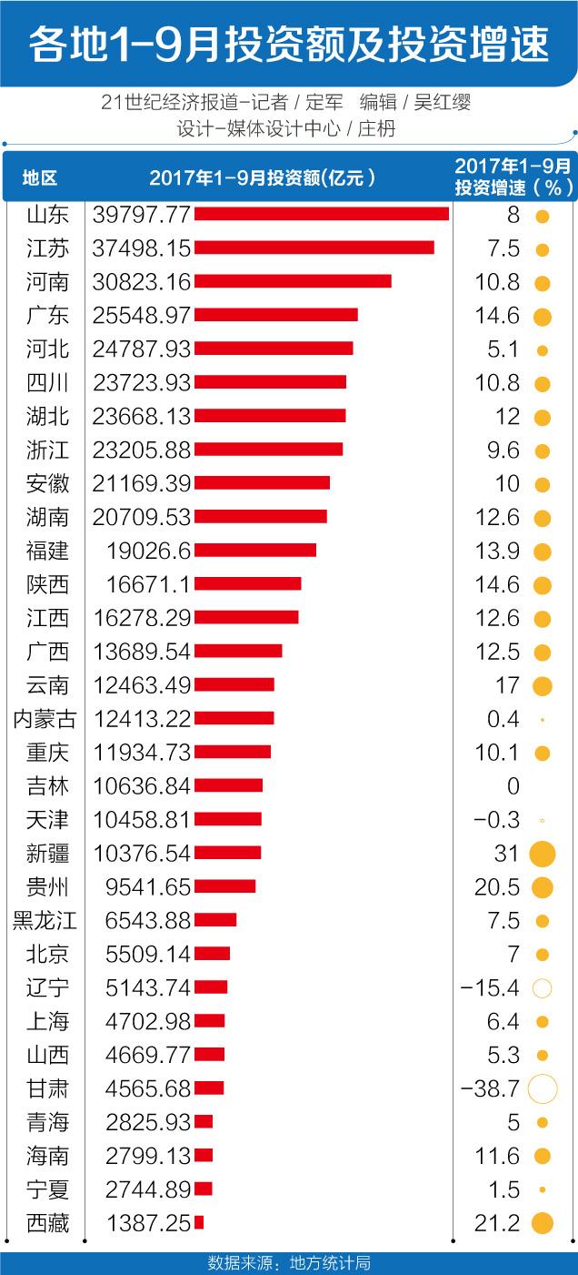 前三季度投资增速比较快的还有西藏、贵州、云南等西部地区,增速分别为21.2%、20.5%、17%。不过,各地投资增速分化也较明显,。