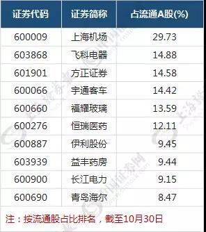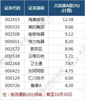 这30只个股持股比例最高
