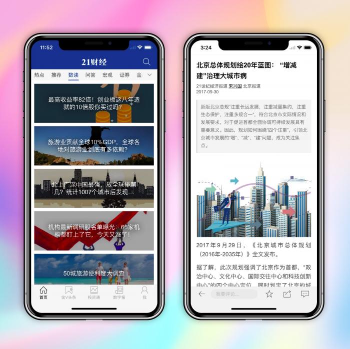 首个财经新闻应用支持iPhone X,21财经APP适配“刘海”
