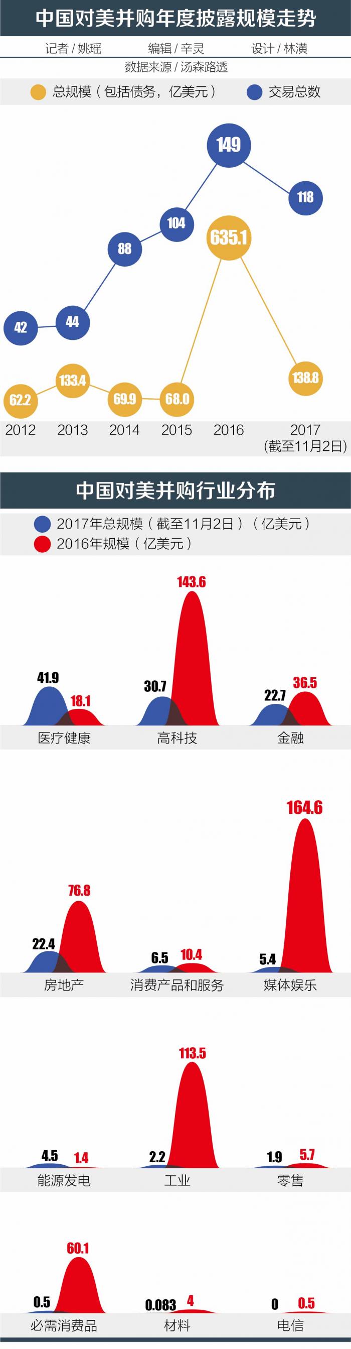 据汤森路透向21世纪经济报道提供的数据显示,今年迄今中国对美国并购规模大降,截至11月2日,今年迄今已披露的中资在美国的并购规模为138.8亿美元,而去年同期为603.6亿美元,降幅近8成。