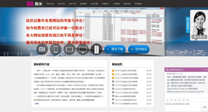 初期,因用户使用效果不佳,二人又在网上找到陈某做了黑米抢购软件官方网站并出售该软件,陈某也是该抢购软件销售代理之一。后二人又陆续开发了黑米华为、黑米魅族抢购软件,并在2015年开发了专门针对天猫网站的黑米天猫(淘宝)抢购软件,在其官方网站上大量销售。