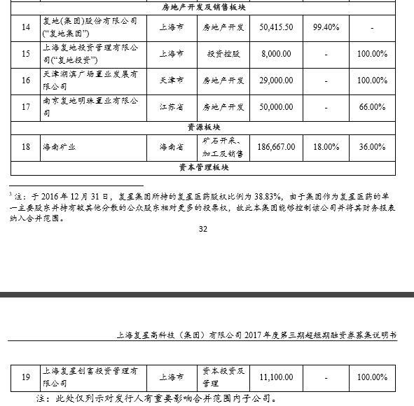 据上述募集说明书显示,截至2016年末,复星高科纳入合并报表范围重要子公司如下: