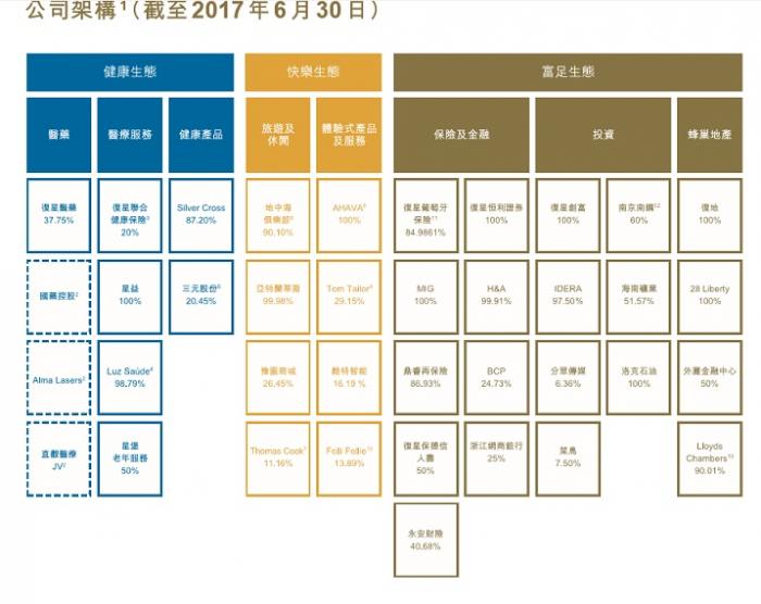 由此看出,复星高科是复星集团控制中国内地资产的重要实体。另外,从港股上市公司复星国际的披露文件可以看出整个复星的全球版图。