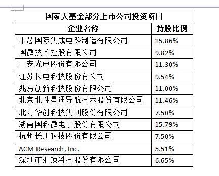 除了汇顶科技,大基金投资的企业还包括制造领域的中芯国际,设计领域的国科微、北斗星通,设备领域的北方华创、长川科技,封装领域的长电科技等。仅持股比例在5%以上的直接股权投资,就已覆盖8家A股公司、2家港股公司和1家美股公司。