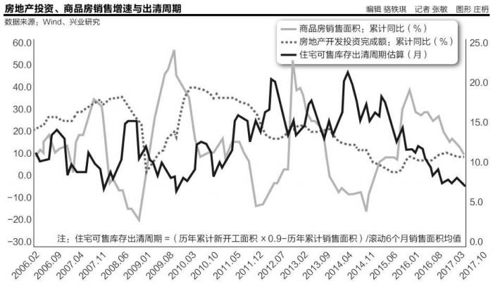 兴业研究认为,受政策环境较紧、销售边际增长有限的影响,预计2018年商品房销售将进入负增长区间,全年商品房销售面积同比预计收在-8%左右;开发投资增速则受到低库存水平、土地成交量涨价稳、租赁用地供应的正向支撑,有望稳中回落至约3%左右。