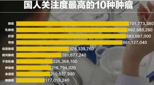 从大数据来看,2017年用户关注度最高的10种疾病多是常见病和慢性病,其中肿瘤以超过36亿次的关注度跃居国人最关注的十大疾病之首。