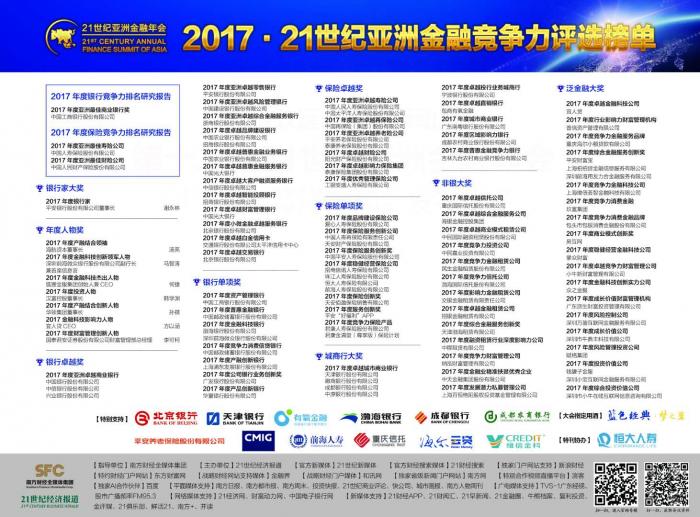 1、第十二届21世纪亚洲金融年会【暨】2017亚洲银行竞争力排名研究报告 & 2017亚洲银行竞争力排名研究报告发布仪式